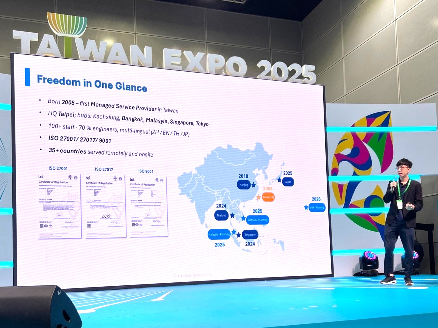 二、以「制度化輸出」賦能全球供應鏈:針對地緣政治下台商加速出海的趨勢,自由系統將在台灣深耕近20年的成功治理經驗完整複製到海外。由內部體系培養、思維敏捷的年輕主管領軍,帶著公司的DNA奔赴前線。這種 「輕資產、高專業」的協作模式,能協助台商在海外擴廠時,迅速建立起與台灣總部同等級的數位防線,確保營運在最短時間內安全落地。